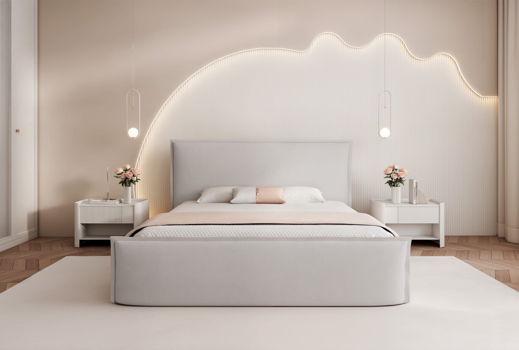 Model Aveline to hołd dla prostoty. Minimalistyczna bryła oraz gładkie, aksamitne wezgłowie bez zbędnych przeszyć wprowadzają do wnętrza wizualny ład i optyczną lekkość. To idealny wybór dla osób ceniących styl skandynawski, nowoczesny oraz klasyczny. Prosta linia łóżka stanowi doskonałe tło dla dekoracyjnych poduszek, narzut i naturalnego światła, pozwalając Ci na dowolną aranżację przestrzeni.