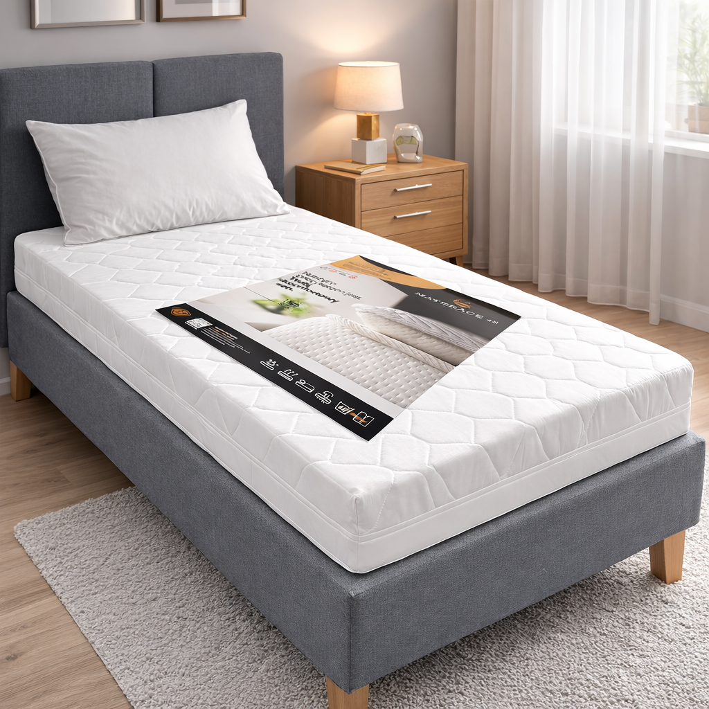 Wysokiej jakości materac hybrydowy kieszeniowy z kokosem. 7 stref twardości, ortopedyczne podparcie, antyalergiczny pokrowiec. Komfort i zdrowy sen każdej nocy.