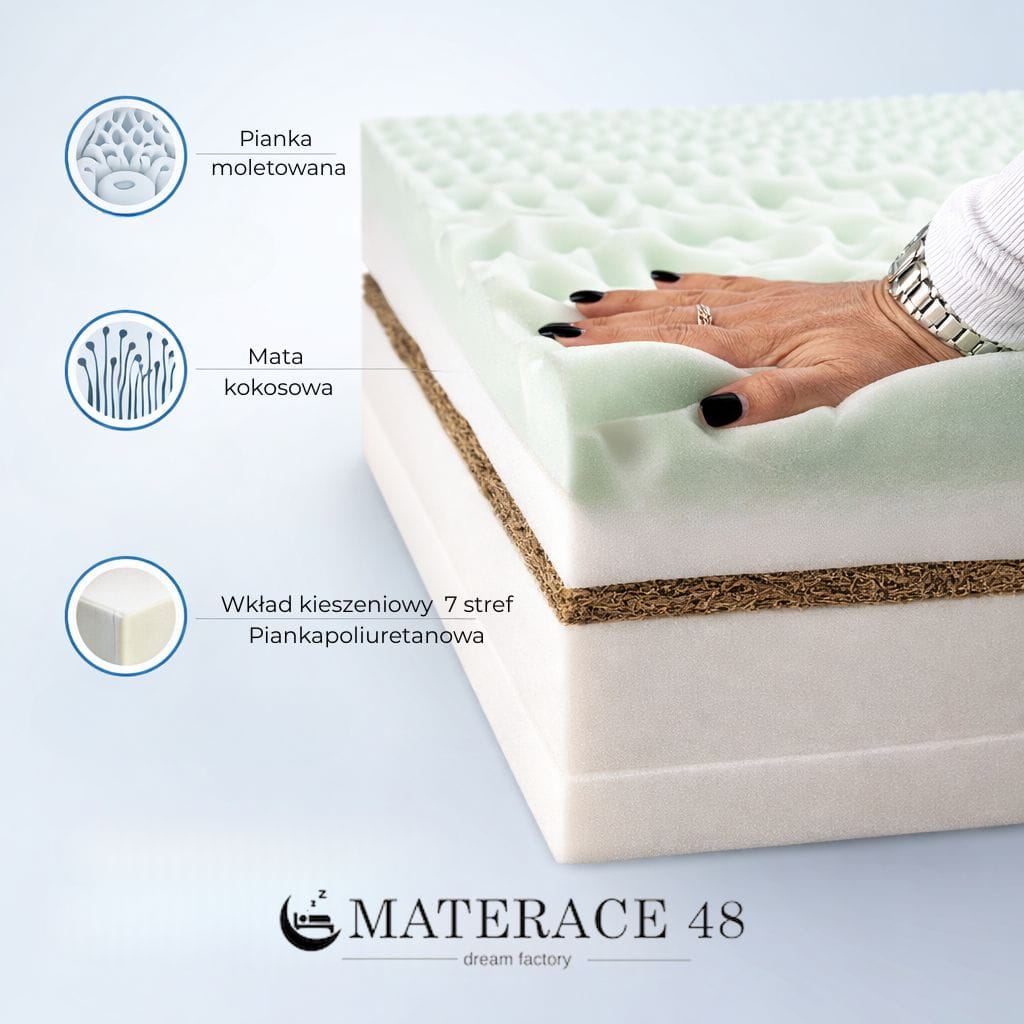 Materac hybrydowy kieszeniowy kokosowy Materace48 Harmony Hybrid Premium – ortopedyczny, 7 stref, antyalergiczny